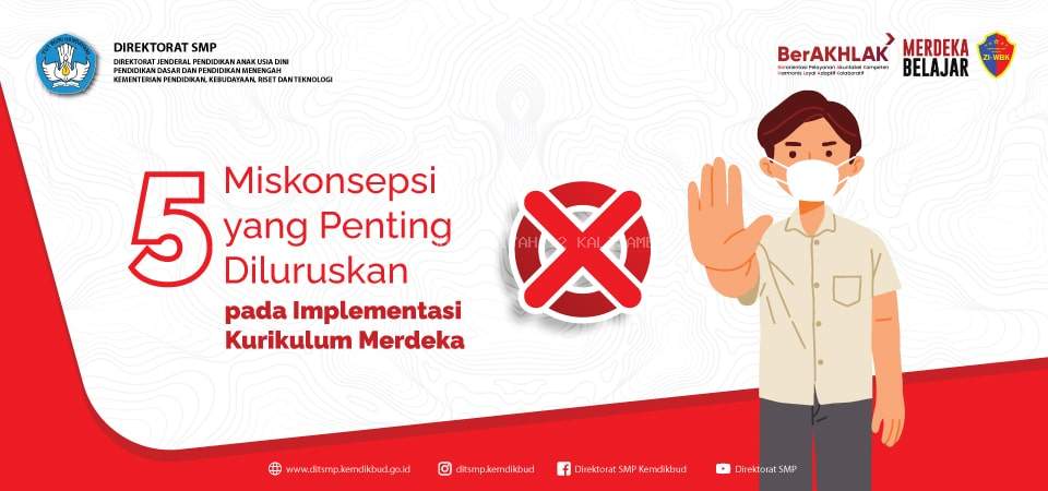 Nah, itulah tadi beberapa miskonsepsi yang perlu diluruskan terkait implementasi Kurikulum Merdeka. Sekarang Sobat SMP sudah tahu kan hal-hal yang kiranya masih membingungkan? Yuk sebarluaskan informasi ini kepada rekan sejawat agar tidak keliru dalam memahami implementasi Kurikulum Merdeka. Pantau juga website Direktorat SMP agar tidak ketinggalan informasi-informasi penting lainnya. Semoga bermanfaat ya, Sobat SMP!